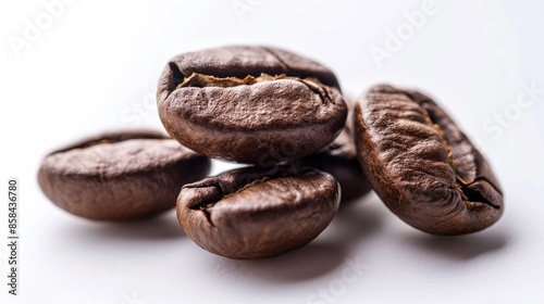 © AkuAku, Obraz premium Coffee beans stacked on white background