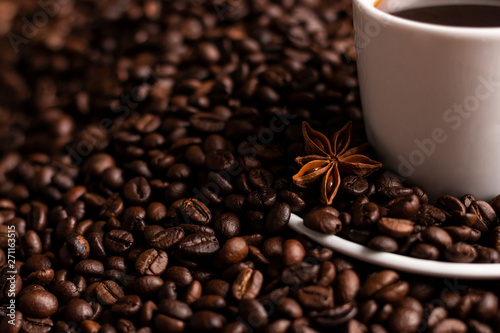 © aitormmfoto, Fototapeta premium Coffee beans with white cup and star anise