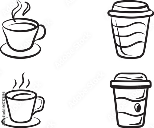 © Rokeyagraphic, Obraz premium Coffee Collection Freshly Brewed Depicting Both Classic Mugs and Paper Cups