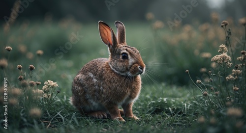 © TheWaterMeloonProjec, Fototapeta premium Coffee-colored rabbit on grassy terrain