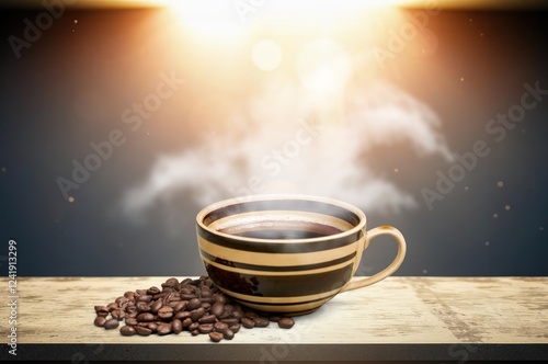 © BillionPhotos.com, Obraz premium Coffee cup and aroma beans on background,