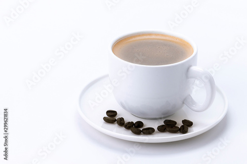 Obraz premium Coffee cup and beans on a white background