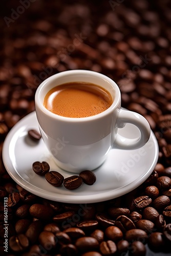© ArtmediaworX, Fototapeta premium Coffee cup and coffee beans. Generative Ai