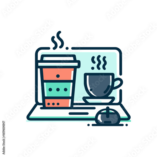 Obraz premium coffee cup next to a laptop, work-from-home icon