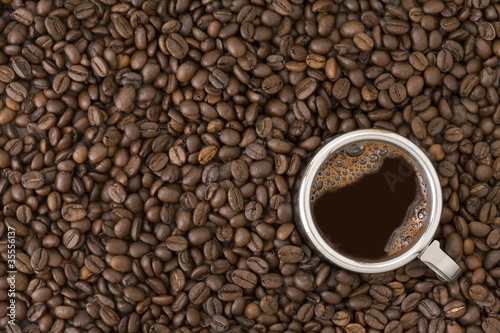 © AlexAvich, Naklejka premium Coffee cup on a coffee beans background