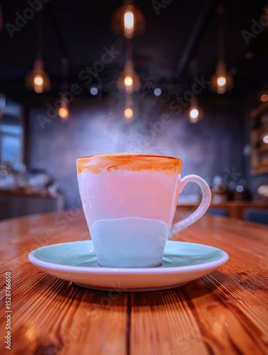 Fototapeta premium Coffee cup on wooden table (1)