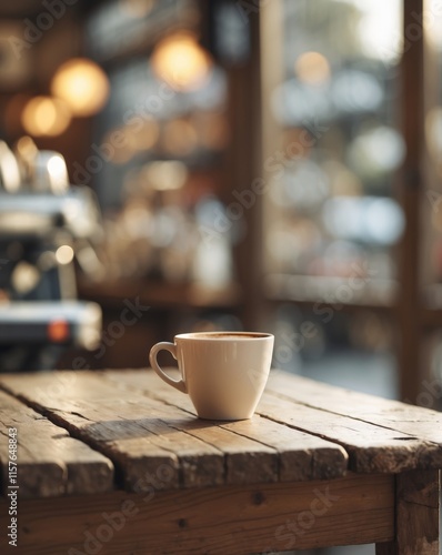Fototapeta premium Coffee Cup On Wooden Table In Coffee Shop