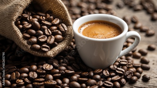 Fototapeta premium Coffee Cup Paired with Fresh Coffee Beans