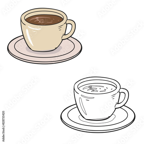 © Nurul, Obraz premium coffee cup vector illustrations. simple design outline style. you can change color you want.