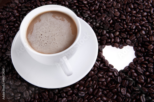 © pipop_b, Fototapeta premium Coffee cup with beans and heart shape