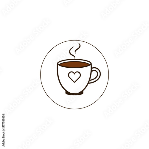 Obraz premium Coffee cup with heart design, cozy and inviting mood, minimalistic style in a circular shape