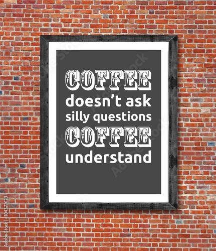 © bennian_1, Obraz premium Coffee doesn't ask written in picture frame