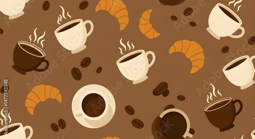 © Frederico, Fototapeta premium Coffee Elements Pattern