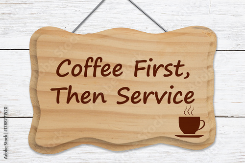 Naklejka premium Coffee first then service sign on weathered wood
