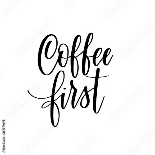 © yasnaten, Obraz premium Coffee first vector lettering calligraphy design quote