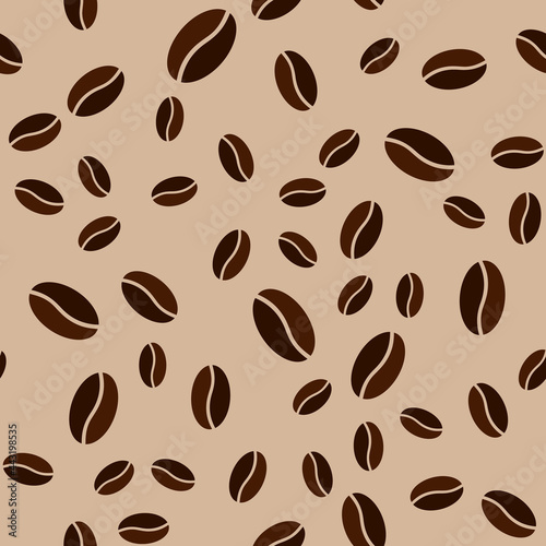 © Biod, Obraz premium Coffee grains beige seamless pattern. Repeated coffee beans beige texture for craft paper, cafe menu, print, wrapping paper. Vector seamless texture.