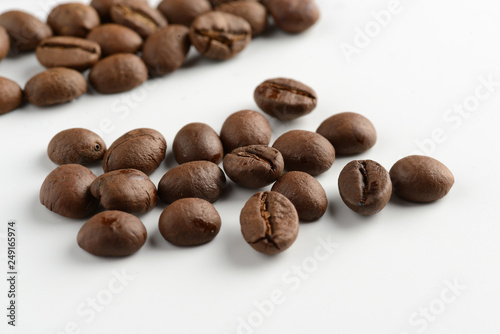 Naklejka premium coffee grains on a white background, close-up, coffee roasting
