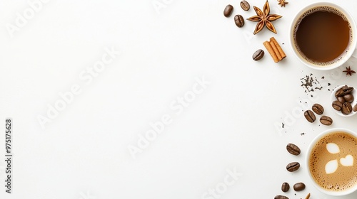 Obraz premium Coffee Latte Art Coffee Beans Cinnamon Star Anise White Background
