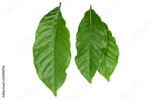 © HAENG, Fototapeta premium Coffee leaves green on white background.