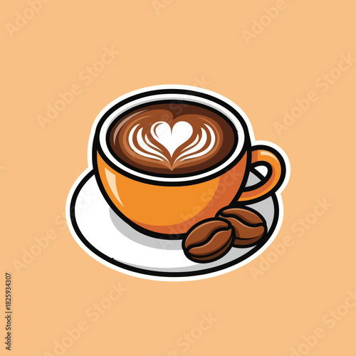 © PUTRI, Obraz premium Coffee love foam with beans cartoon icon illustration.