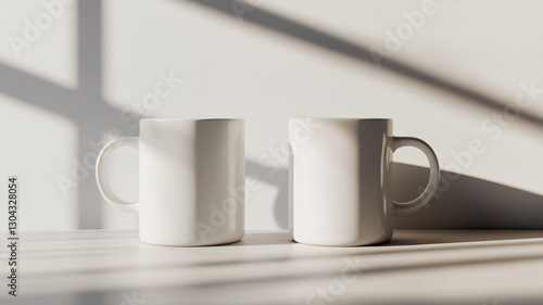 © Yuwarin, Fototapeta premium coffee mugs mockup on a light grey background