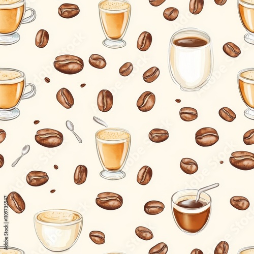 © photoplotnikov, Obraz premium Coffee Pattern Illustration