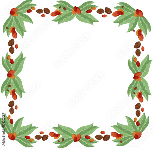 Fototapeta premium Coffee plant frame design. Vector illustration with whole roasted beans. Square frame design