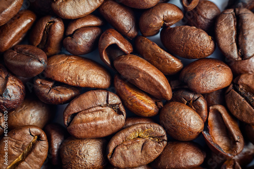 Naklejka premium Coffee roasted beans texture background. Beverage, food, morning refreshment