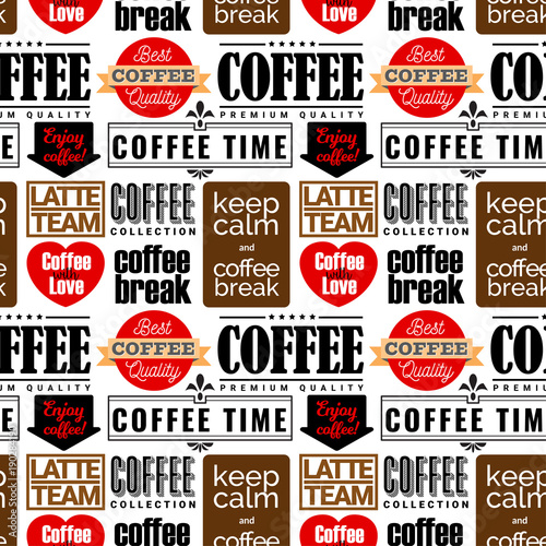 © sergeygerasimov, Obraz premium Coffee seamless pattern design. Vector illustration.