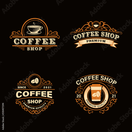 © abdularis, Obraz premium coffee shop logo set in vintage style.