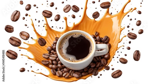 © ลลิดา ไชยศรีษะ, Obraz premium Coffee Splash with Beans