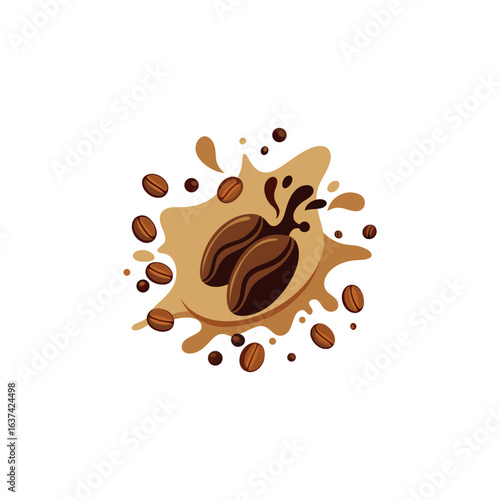 © ohe, Obraz premium coffee splash with coffee beans set isolated flat