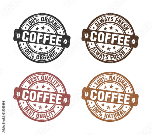 Fototapeta premium Coffee stamp set. Round grunge vintage coffee sign