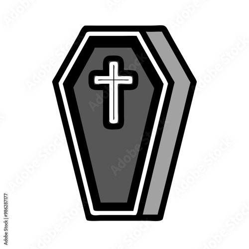 Obraz premium Coffin Icon with Cross in Simple Line Art, Halloween Symbol