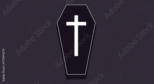 © Azka, Obraz premium Coffin with Cross on Dark Textured Background, Death Symbolism