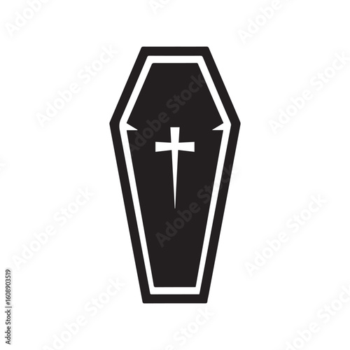 © Kamrunnahar, Fototapeta premium Coffin with Cross Silhouette Icon for Halloween and Funeral Themes