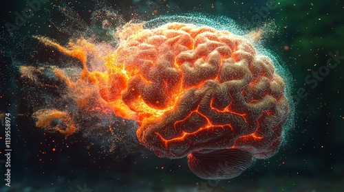© SakdaSong, Fototapeta premium Cognitive decay with disintegrating neural connections in a brain rot visual
