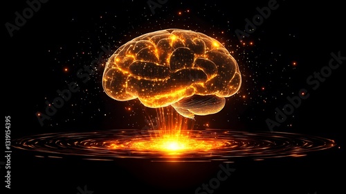 Fototapeta premium Cognitive load theory represented by a brain weighed down by a glowing digital load, balancing complexity and information processing