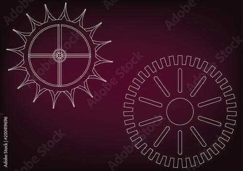 © VLADIMIR NIKIFOROV , Fototapeta premium Cogwheels on a burgundy