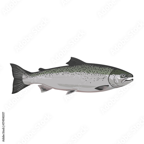 © Olga, Naklejka premium Coho salmon illustration with detailed features on transparent background, isolated, vector