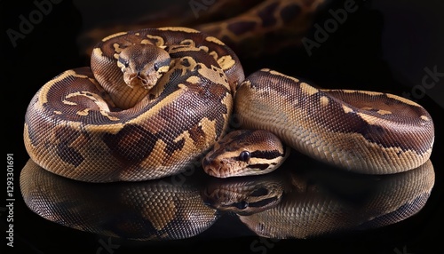 Obraz premium Coiled Ball Python in Striking Detail, Showcasing Mesmerizing Patterns and...