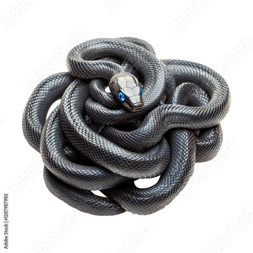Obraz premium Coiled black snakes tightly intertwined, displaying glossy scales isolated on...