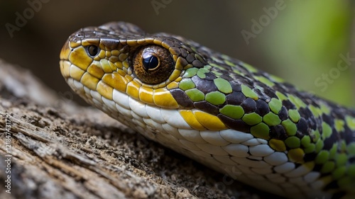 © KeeriwalaGamage, Obraz premium Coiled Bothriechis Marchi in the Wild Interacting with Nearby Prey or Bird