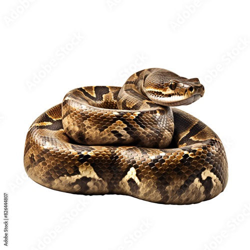 © Maureen, Obraz premium Coiled brown and black python on transparent background