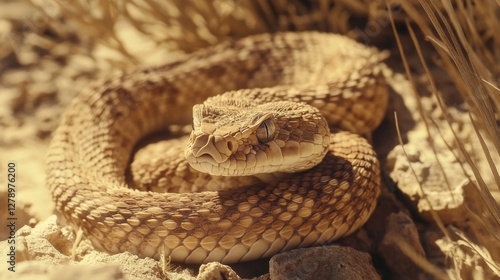 © Pure Imagination, Obraz premium Coiled Desert Snake Close Up