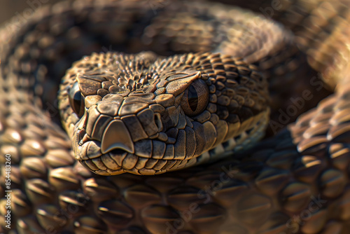 © Phichitpon, Obraz premium coiled eastern diamondback rattlesnake ready to strike, ai generative
