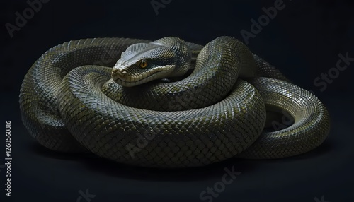 © Rifki Fachrudin, Fototapeta premium Coiled Green Tree Python Snake on Black Background Wildlife Concept