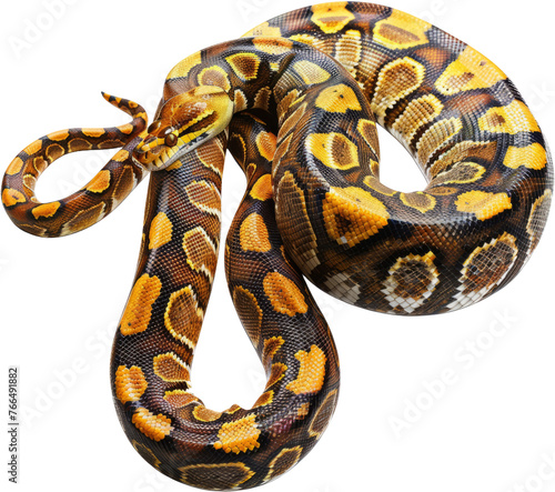 © Maestro, Obraz premium Coiled python with intricate scales, cut out transparent