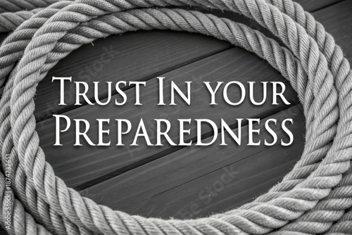 Fototapeta premium Coiled Rope With Bold Text About Trust And Preparedness