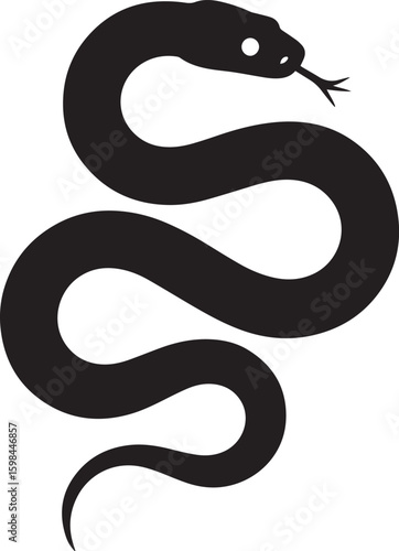 Obraz premium Coiled Serpent Silhouette Illustration Dangerous Reptile with Forked Tongue and Distinctive Eye a Symbolic and Striking Image